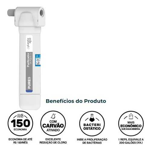Filtro Purificador Para Embaixo Da Pia PURE9 CA Planeta Água Rosca 1/2