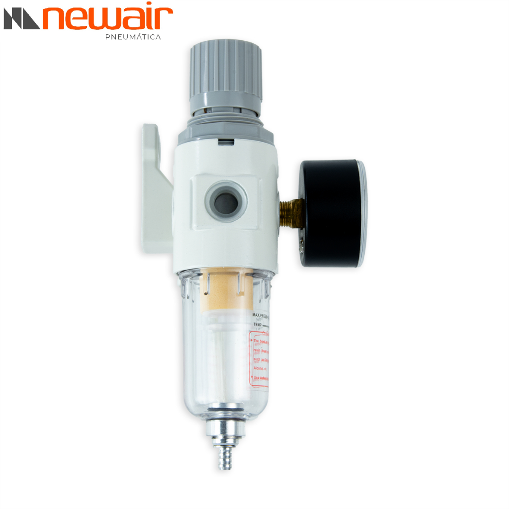 O Filtro Regulador Ar Compressor 1/4 da marca NEWAIR é a solução ideal para quem busca eficiência e controle na utilização de ar comprimido. Com uma pressão máxima de 120 psi, este equipamento é projetado para regular e reduzir a pressão do ar, garantindo um desempenho otimizado em diversas aplicações. Fabricado em alumínio, o manômetro seco possui um diâmetro de 40 mm e uma conexão lateral de 1/4, facilitando a instalação em sistemas de ar comprimido. Sua temperatura máxima suportada é de 60 °C, o que o torna adequado para ambientes de trabalho exigentes. Este filtro regulador é essencial para profissionais que necessitam de um controle preciso da pressão do ar, contribuindo para a durabilidade dos equipamentos e a qualidade do trabalho realizado. Invista em um produto que combina robustez e funcionalidade, ideal para atender suas necessidades industriais. Características: Entrada: 1/4" Regulação de pressão: Até 120 PSI Material: Alta qualidade e durável Vazão 980 l/min Dreno semiautomático Elemento filtrante 5 micra Aplicações: Indústrias, compressores, pistolas, etc. Benefícios: Protege equipamentos contra variações de pressão Aumenta a vida útil dos componentes Garante um fluxo de ar estável e limpo