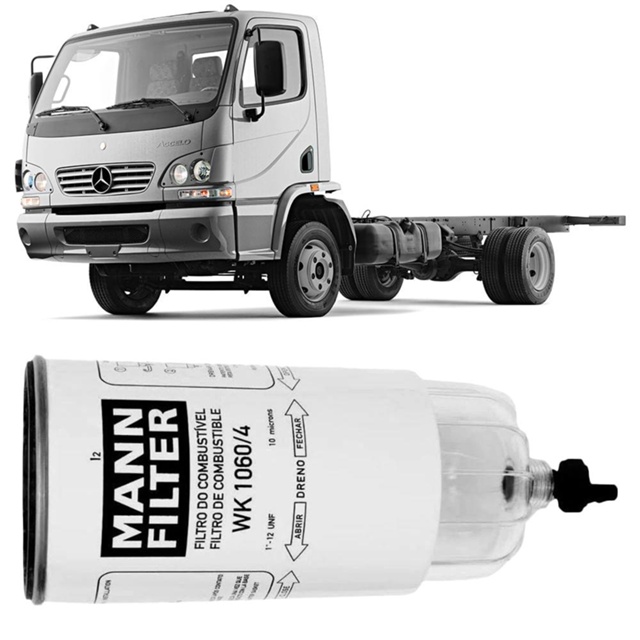 NÃO VENDEMOS PARA PESSOA JURÍDICA CONSUMIDOR. PRODUTO NOVO. >Aplicação ACCELO 915C 2P (DIESEL) 2002 até 2012 Conteúdo Da Embalagem > 1 Filtro Separador Tipo de Veículo para Caminhões Marca > Com uma ampla e inovadora linha de produtos a Mann-Filter, sempre primando um alto padrão de qualidade em seus produtos, atendendo assim a todas as exigências da montadoras. Contando com filtros de ar, óleo, combustível e cabine para todos os tipos de motores veículares é máquinas. O Produto A função do filtro separador de água do diesel é exatamente o que seu nome diz: retirar a água do diesel. “Ao impedir que esta água contamine o motor, evita-se a corrosão dentro do sistema e que se prejudique assim a injeção do diesel nele. Importante • Tempo de garantia - 3 meses • Imagem meramente ilustrativa • Valor unitário • Prazo de troca e devolução: 7 dias a partir do recebimento do produto - Lei nº 8.078 EAN 7893390801004 Código do Fabricante WK1060/4 >