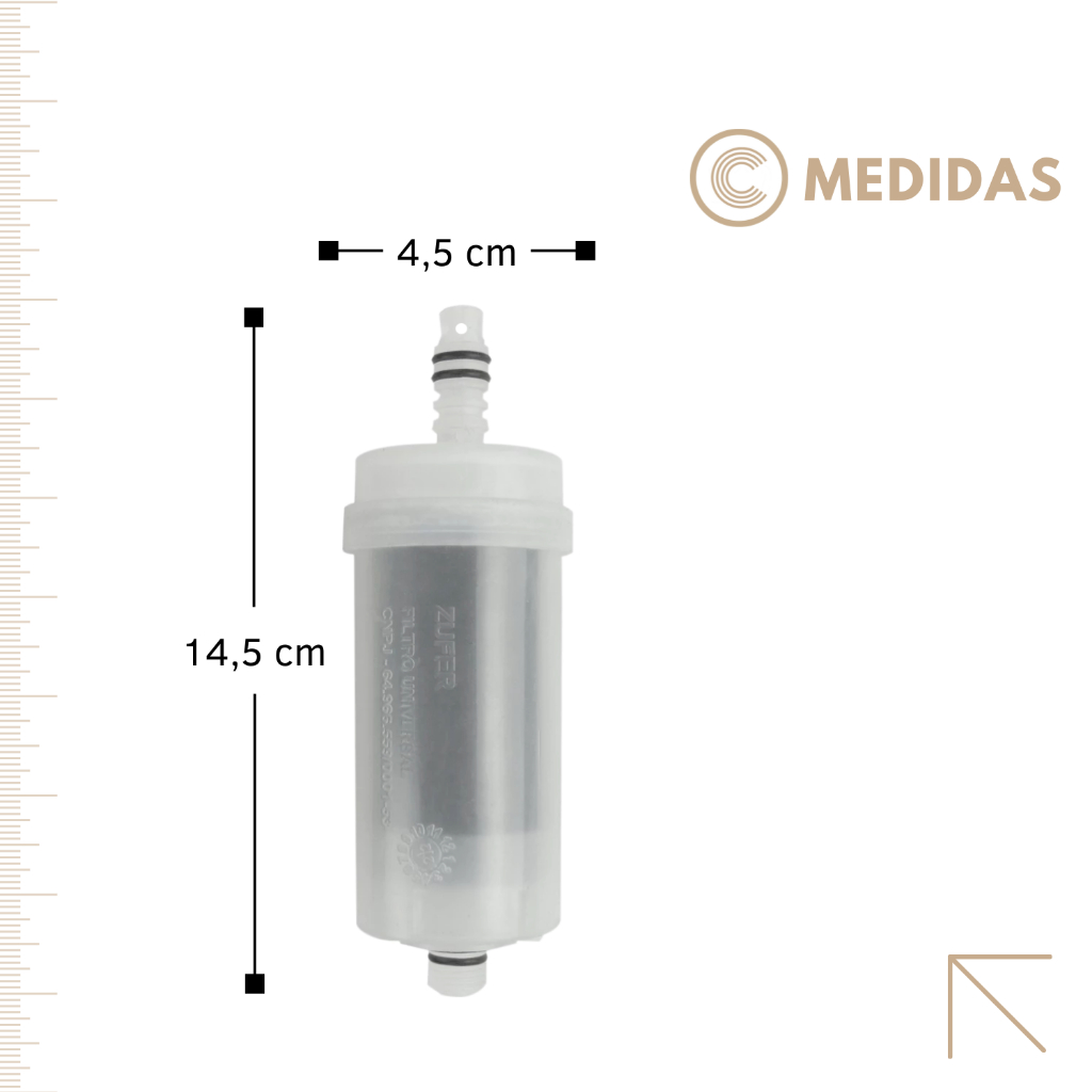 Refil Para Filtro modelo Zufer. Com o filtro zufer você terá a sua água filtrada com qualidade em todos os pontos da sua casa, comércio, hotel, escola, clubes, hospitais, laboratórios, entre outros. Retém areia, argila, ferrugem e outros sedimentos em suspensão. Reduz os excesso de cálcio e alumínio utilizados no tratamento artificial da água. Retém também sustâncias orgânicas em suspensão (algas mortas). Aumenta a vida útil do sistema de aquecimento solar e da resistência dos chuveiros. Isenta sua agua de sabor e odor desagradável, causados pelo tratamento químico ou artificial. elimina o sedimentos que causam o Amarelamento Das roupas brancas. Pode ser utilizado apenas com leito de carvão ativado, atuando com isso como declorador. 1º estágio: inicio de filtragem: Elemento para retenção das micro-partículas sólidas como barro, limo e ferrugem da água. Possui a granulometria adequada, com a função de filtrar os metais pesados presentes na água. 2º estágio : carvão ativado: O carvão ativado impregnado com prata, faz o controle do nível microbiológico da água, inibindo a proliferação de bactérias nocivas à saúde. Elimina o excesso do cloro, odores desagradáveis e melhora o seu sabor. 3º estágio final: polidor. Elimina a turbidez da água, mantendo-a cristalina e purificada, pronta para o consumo com segurança. Caracteristicas. Código: zf22102 Pressão máxima: 6,1 kgf/cm. Pressão trabalho: 0,4 a 4,1 kgf/cm. Carvão ativado: ndc2. Elemento interno: polietileno. Rosca da entrada: 1/2 bsp Vazão: 54 litros/hora. Para garantir água de qualidade no equipamento, a substituição é indicada a cada 3.000 litros, 6 meses ou quando observada a redução do fluxo da água.