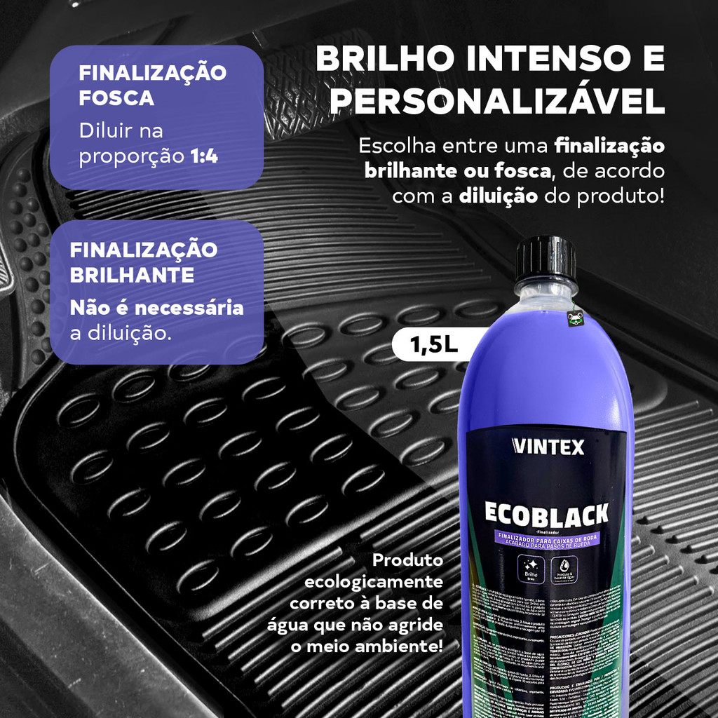 | Finalizador Automotivo Caixa Rodas Tapete Pneu Ecoblack 1,5L Vintex este produto | R$ 39,90 | — | 5.0/5 | — |