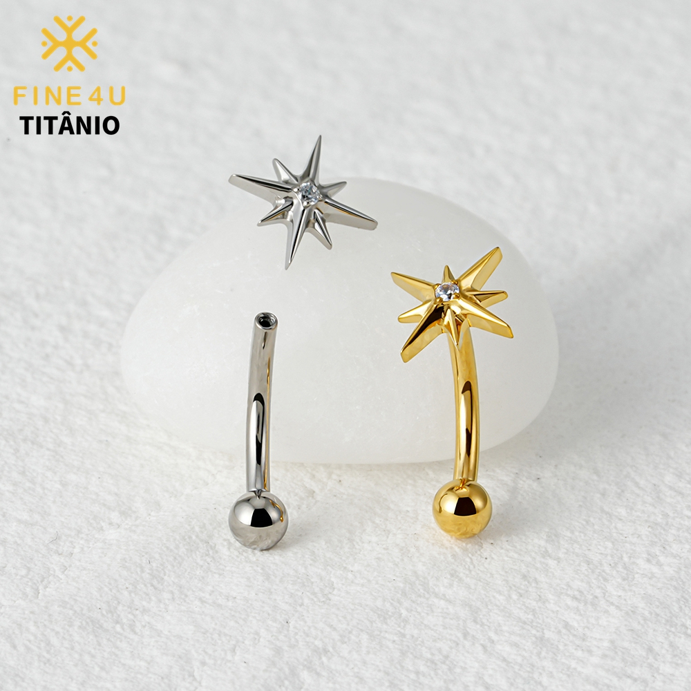 FINE4U Piercing Sobrancelha Titânio Estrela do Norte Microbell Curvo Zircônia Para Rook Cartilagem