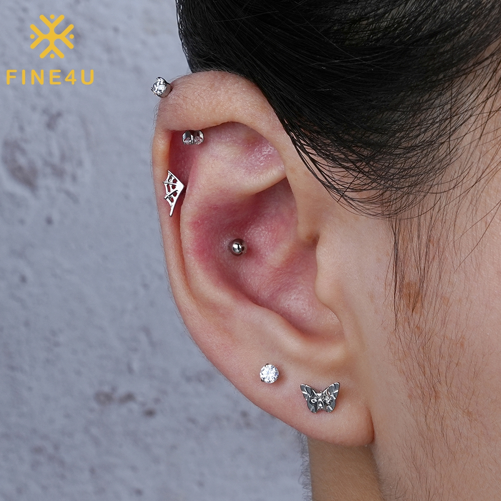 FINE4U Piercing Titânio Teia de Aranha PVD hipoalergênicas Para Oralha Helix Conch Tragus