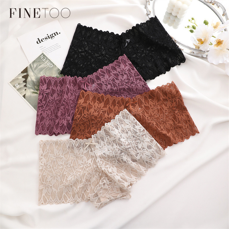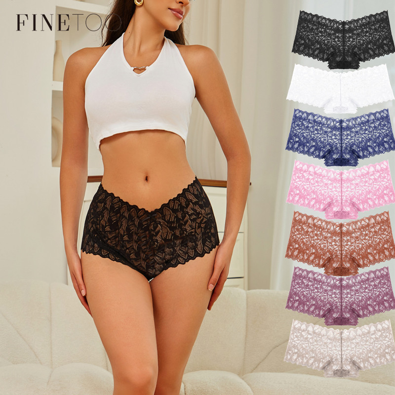 FINETOO Mulheres Boxer Shorts Floral Renda Calcinha Oca Roupa Interior Cintura Média Lingerie Sexy