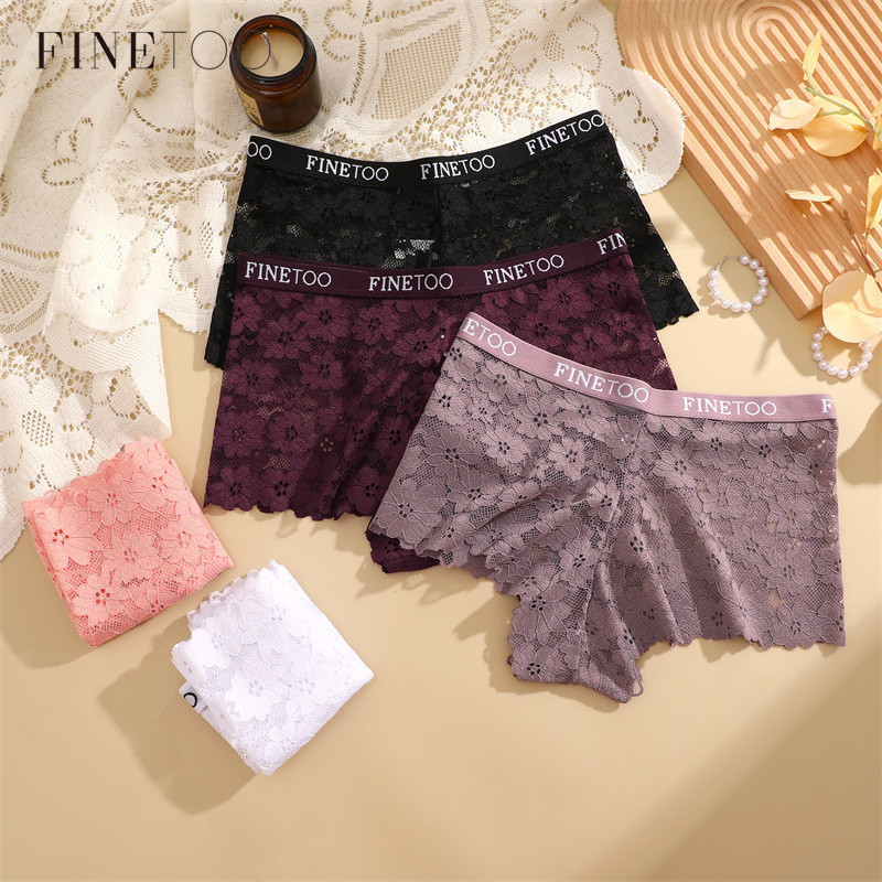 FINETOO Shorts Boxer De Renda Para Mulheres Calcinha Estampada Cinto Sexy Lingerie De Algodão