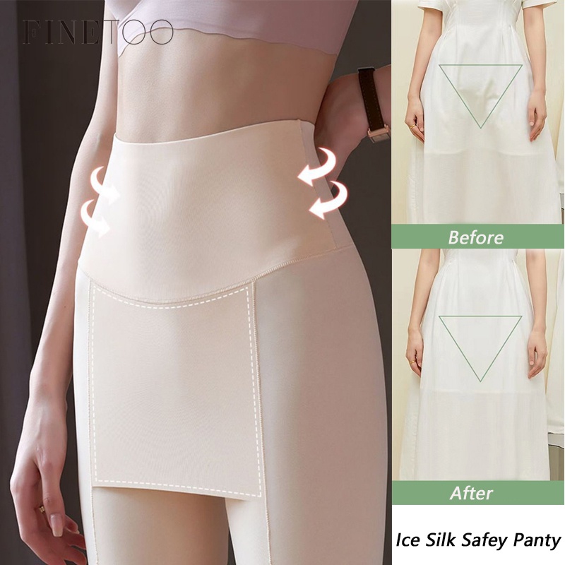 Finetooo Calça De Segurança De Seda Gelada Feminina Compartimento De Verão Anti-Novas Leggings Calções Dupla Camada Sem Costura