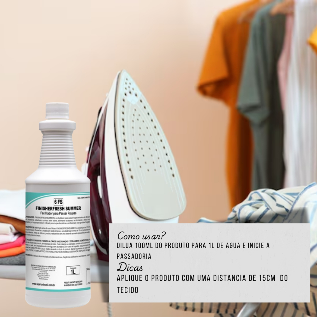 EstamoEstamos no mercado varejista e atacadista desde 2018 trabalhando com produtos de higiene, limpeza, descartáveis e produtos para piscina. Somos ágeis, flexíveis e supercompetitivos, a nossa missão é atendê-los da melhor forma possível, oferecendo produtos de ótima qualidade, com ótimos preços e que irão facilitar o seu dia a dia nos cuidados com a limpeza e higiene da sua casa ou da sua empresa! O Finisherfresh Summer 1L da Spartan é o toque final perfeito para suas roupas e tecidos, proporcionando uma experiência de frescor e maciez incomparável Características Principais: Deixa suas roupas com uma fragrância refrescante de verão que resiste até às altas temperaturas. Elimina a aspereza dos tecidos, tornando o processo de passar roupas muito mais fácil e eficiente. Ideal para uma variedade de tecidos, incluindo toalhas, lençóis, edredons, cobertores e cortinas. Perfeito tanto para uso doméstico quanto para lavanderias profissionais. Modo de Usar: Pulverize o produto diretamente sobre as roupas ou tecidos. Passe as roupas normalmente, aproveitando a maciez e o perfume que o produto proporciona. Guarde as roupas em local seco e arejado para manter o frescor por mais tempo. Aguardamos a sua compra e estamos à disposição!