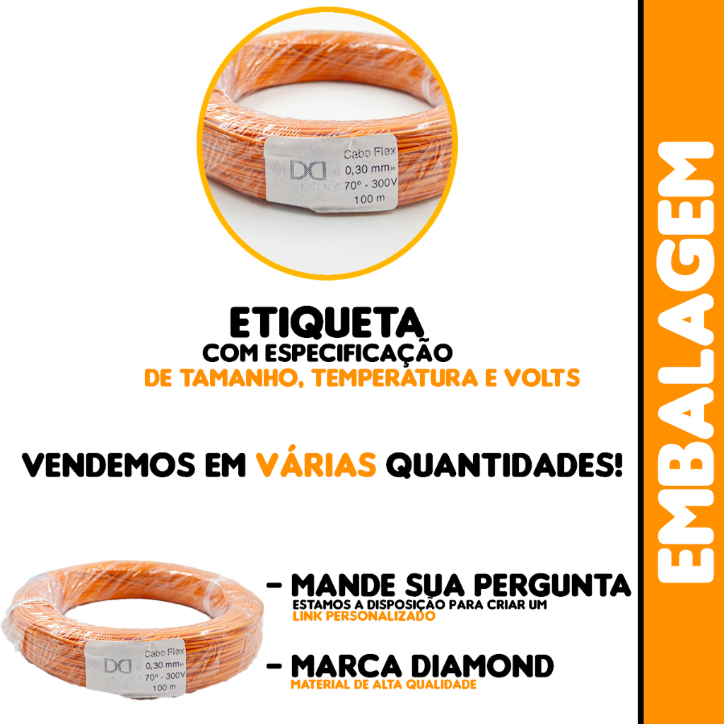 Fio Cabo Flexivel Colorido 0,30mm 1 Rolo Puro Cobre OFERTA UTILIZAÇÃO: Condutor com características de não propagação e autoextinção do fogo. Recomendado para aplicações onde exigem-se cabos com maior flexibilidade, como em redes de distribuição de energia de prédios residenciais, comerciais e industriais, ligações de painéis e motores elétricos. -Tipo: Fio Cabo -Modelo: cabinho 0,30mm -Bitola: 0,30mm -Comprimento: 100m -Composição: Cobre + PVC -Fabricante: Permak 1º linha -Origem: Nacional -Aplicação: Linha automotiva, som e instalações elétrica internas em baixa tensão -Garantia do Fornecedor: 12 Meses -Cores: • Vermelho • Preto • Azul • Verde • Branco • Amarelo • Marrom • Laranja • Lilás • Cinza Embalagem: *NORMA(S) APLICÁVEL(IS) ABNT NBR NM • Cabos isolados com policloreto de vinila (PVC) para tensões nominais até 450/750V. 0 • Instalações elétricas de baixa tensão. EMITIMOS NOTA FISCAL ******************************************************* -Produto a pronta entrega -produto novo e direto do fabricante -garantia de 30 dias após a compra -Possui engate que evita ser ligado errado para outras quantidades ou pergunta, mandar uma pergunta