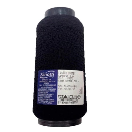 O lastex é uma linha elástica, bem fininha, usada em confecção para franzidos em tecidos leves, pode ser usada também para artesanato. Excelente qualidade Corrente de excelente resistência e durabilidade na cor. Cone com 500 metros Composição: 64% Elastodieno 36% Poliéster Contém: 1 unidade Espessura: 0,8mm Fabricante: Zanotti Todas as cores da tabela disponiveis