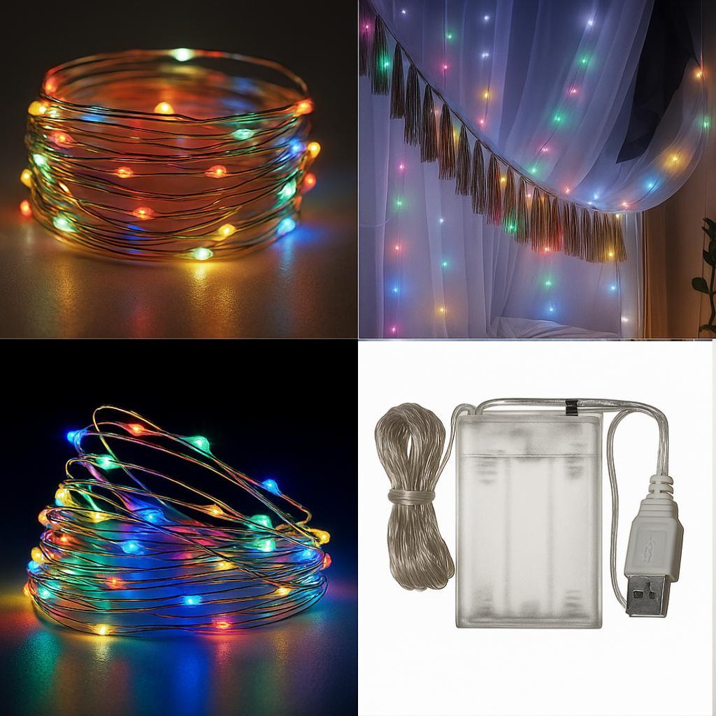 Fio de Luzes Led Fada 10 metros 100 Leds USB - Pilha Cobre Prata cordão Luz decoracao natal ano novo
