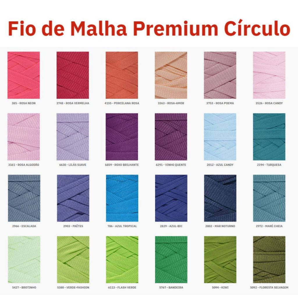 FIO DE MALHA PREMIUM CÍRCULO OPÇÕES DE COMPRA: 1 UNIDADE 2 UNIDADES DA MESMA COR 25MM / 140M (CADA ROLO) Os fios de malha extra premium são produzidos através de malhas fabricadas exclusivamente para este fim. Por este motivo não há diferença de espessura no decorrer do rolo. Não utilizamos resíduos têxteis. Obtenha um melhor ajuste de ponto com nossos fios de malha com elastano (Stretch). - Sem emenda - Fio regular sem diferença na espessura dentro do rolo - Não perde cor e brilho - Fio com elasticidade e macio (Stretch) Sobre o fio: Composição: 94% poliéster / 6% elastano Metragem aproximada: 140 metros Peso aproximado: média de 260g Espessura de corte: 25mm Ideal para: Crochê - Tricô - Macramê - Tear - Tapeçaria - Artesanato em geral Agulha Recomendada: Crochê - 8,0mm a 12,0mm | Tricô - 9,0mm a 12,0mm *A cor do produto pode variar de acordo com as configurações do seu monitor. Fabricante: Círculo