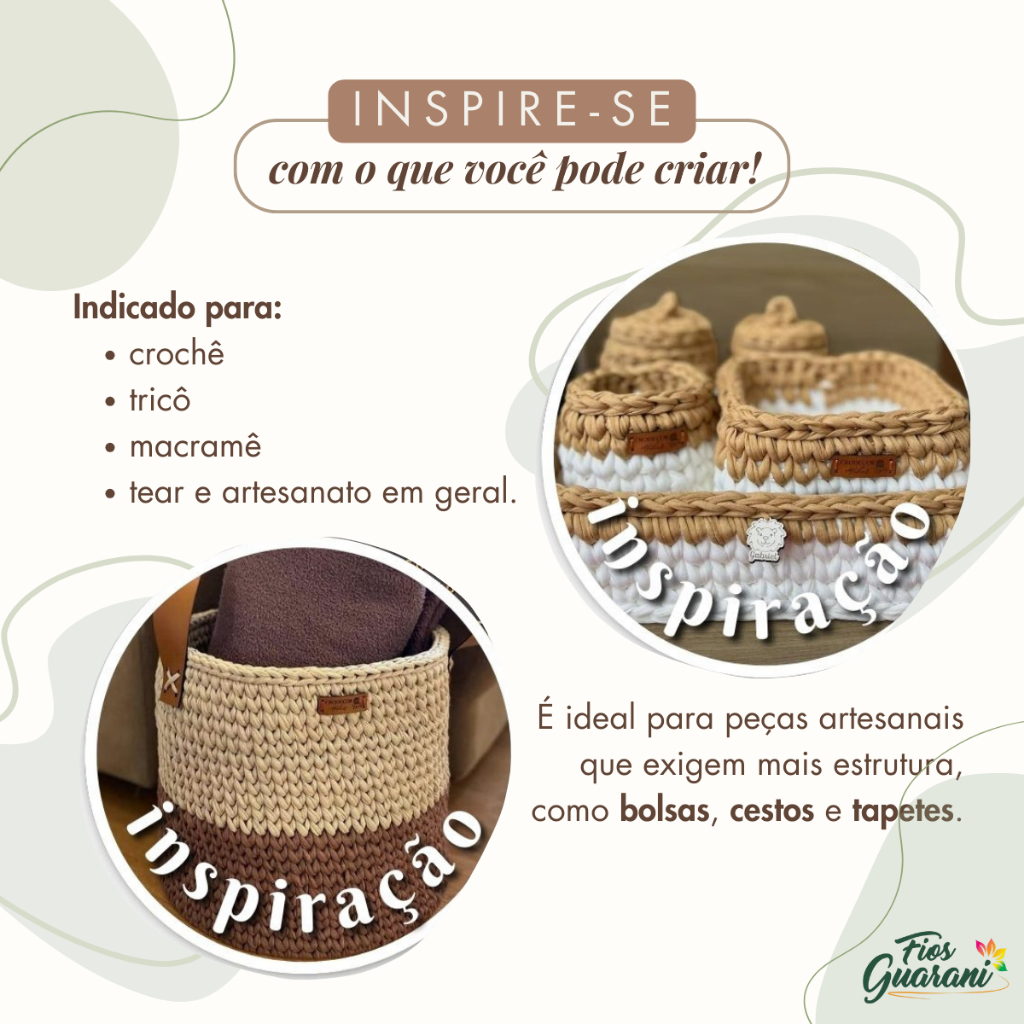 Fio de Malha Residual Metragem: 140 metros tensionados Peso Médio: 900g Espessura: Média (pode apresentar variações por ser um fio residual) Composição: 85% algodão e 15% outras fibras Sobre o Fio de Malha Residual O Fio de Malha Residual é um produto sustentável, feito a partir do reaproveitamento de resíduos têxteis, tornando-se 100% sustentável. Ele é ideal para a criação de peças artesanais que desbloqueiam mais estrutura, como cestos, tapetes e bolsas. Cada novelo é cuidadosamente selecionado para garantir a melhor experiência aos nossos clientes. No entanto, por se tratar de um material reaproveitado, algumas características podem estar presentes, como: ✔ Variação na espessura do fio dentro do mesmo novelo. ✔ Possíveis emendas ao longo do fio. ✔ Diferentes composições têxteis, incluindo elastano, algodão e poliéster. ✔ Uma única cor pode conter diferentes tonalidades Atenção! Pequenas diferenças na cor podem ocorrer devido à natureza do material reaproveitado e à configuração de telas de celulares e monitores. A presença de emendas e leves imperfeições é uma característica natural do fio residual. 🌿 Escolha um produto sustentável e crie peças incríveis com os Fios Guarani! Para escolher tonalidade ou cor específica, indique nas observações do pedido ou entre em contato pelo chat para informar sua preferência de tonalidade do Fio de Malha Residual que faremos o possível para atender, conforme disponibilidade de estoque. Produto indicado para Crochê, Tricô, Macramê, Tear e Artesanatos em geral. Sugestão de uso de agulhas: Agulha de crochê 7mm para fios mais finos; Agulha de crochê 8mm ou 9mm para espessura média; Agulha de crochê 10mm ou 12mm para fios mais grossos.