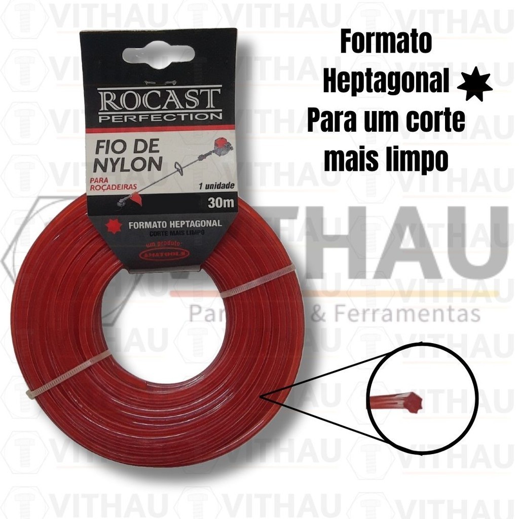 Fio de nylon heptagonal para roçadeira VERMELHO Rocast 1,8 mm x 30m