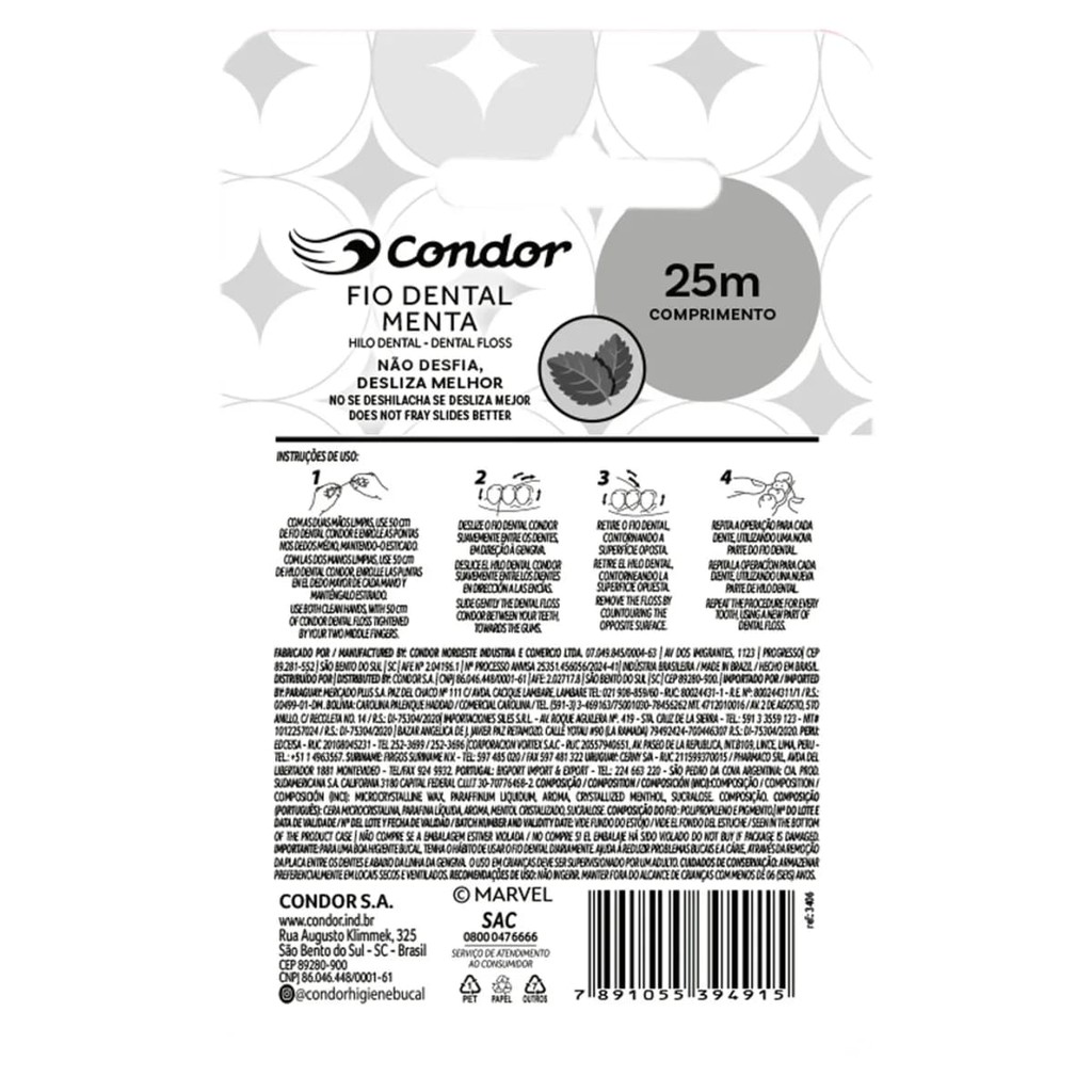 O Fio Dental com Cera Capitão América possui nova formulação exclusiva que não desfia e desliza melhor entre os dentes, removendo toda placa bacteriana dos espaços mais escondidos entre os dentes. Com um delicioso sabor menta, o Fio Dental com Cera Capitão América está disponível na versão 25m.