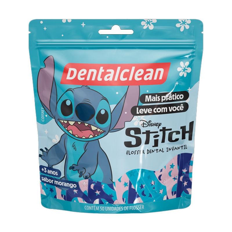 Fio Dental Infantil Dentalclean Stitch +3 Anos Sabor Morango 50 Unidades
