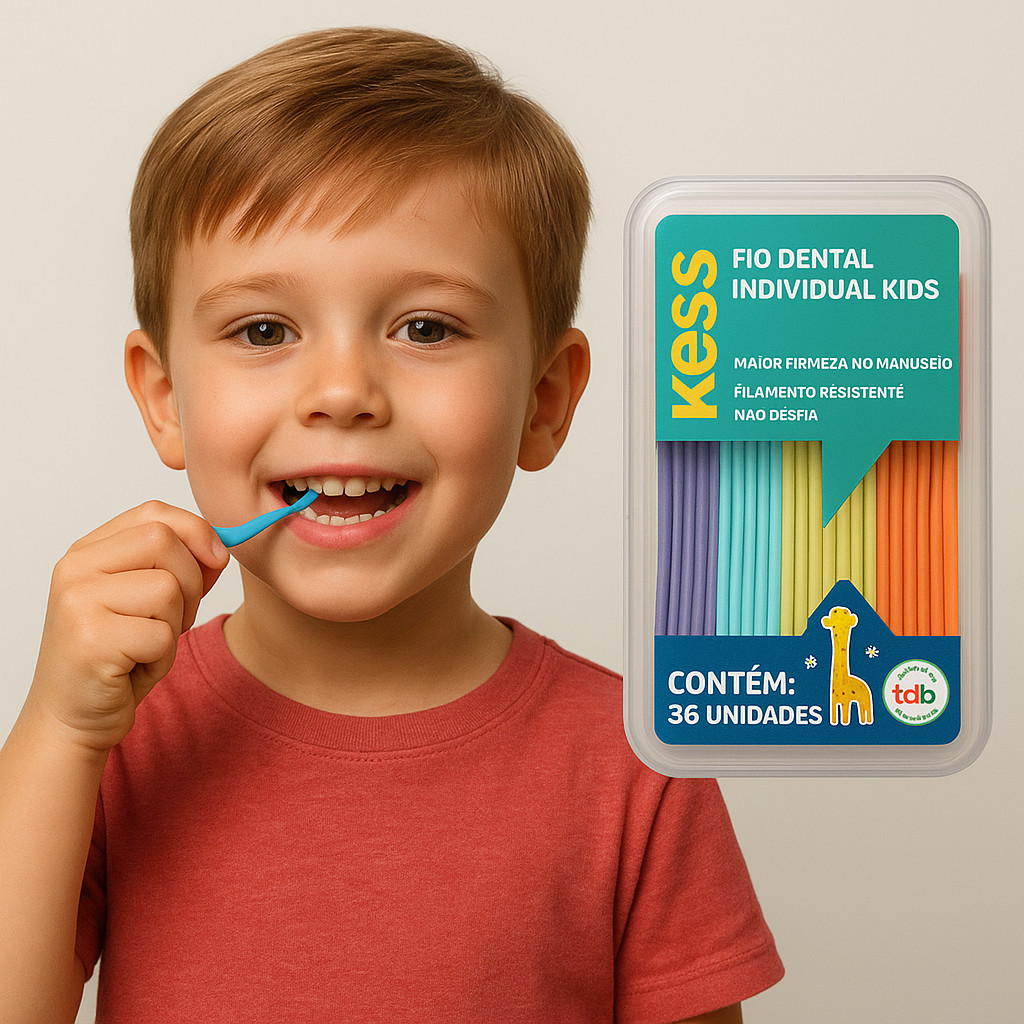 Escolha o kit ideal para sua necessidade: Variação: • 1 caixinha – 36 unidades • 2 caixinhas – 72 unidades • 3 caixinhas – 108 unidades Fio Dental Individual KIDS KESS Colorido, divertido e ideal para crianças 👶🦷