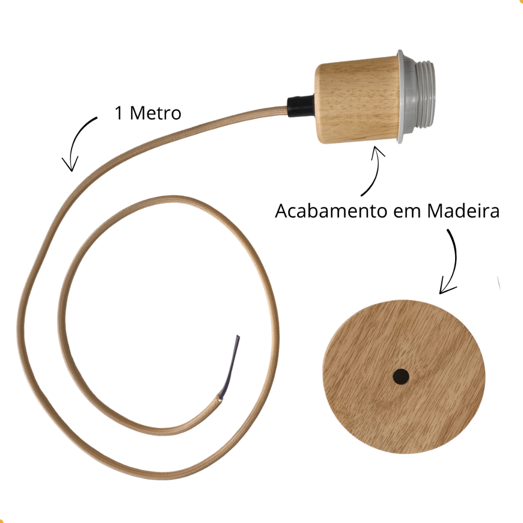 Fio Elétrico Para Pendente Cor Marrom Madeira 1 Metro Fiação Lustre Pendente Canopla De Madeira
