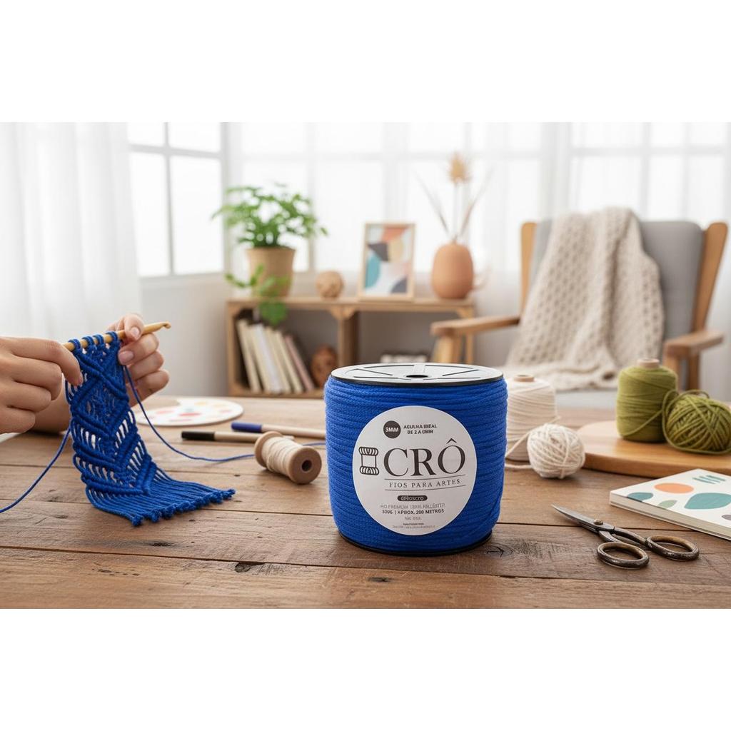 Fio Náutico 100% Poliéster 3MM - 200 Metros 300 gramas Tricô, Crochê Azul Royal