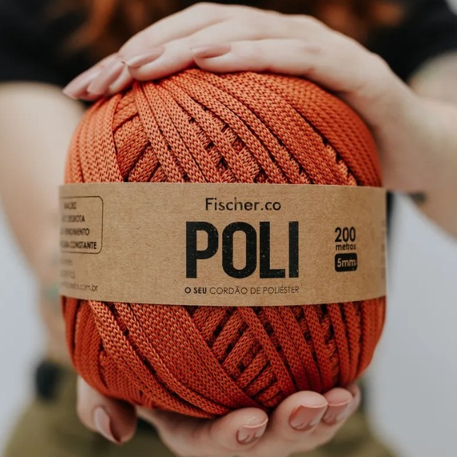 O Fio Poli é uma evolução do Fio de Poliéster, em um equilíbrio perfeito entre leveza e estrutura. Sua melhor característica é sua leveza e maciez ao crochetar aliada a grande estrutura nas peças finais. Produzido com 100% Poliéster de altíssima qualidade. Um fio de extrema elegância e desenvolvido com uma cartela de cores selecionada e assertiva. Seu rendimento é de 200 metros (rendimento ideal para produção de peças médias – grandes) Ele é ideal para peças como Bolsas, Sousplat, Cachepôs e Artesanatos em geral. Composição: 100% Poliéster Espessura: 5mm Agulha ideal: 4,5 – 5,5mm Metragem: 200 metros por rolo Peso aproximado: 400gr