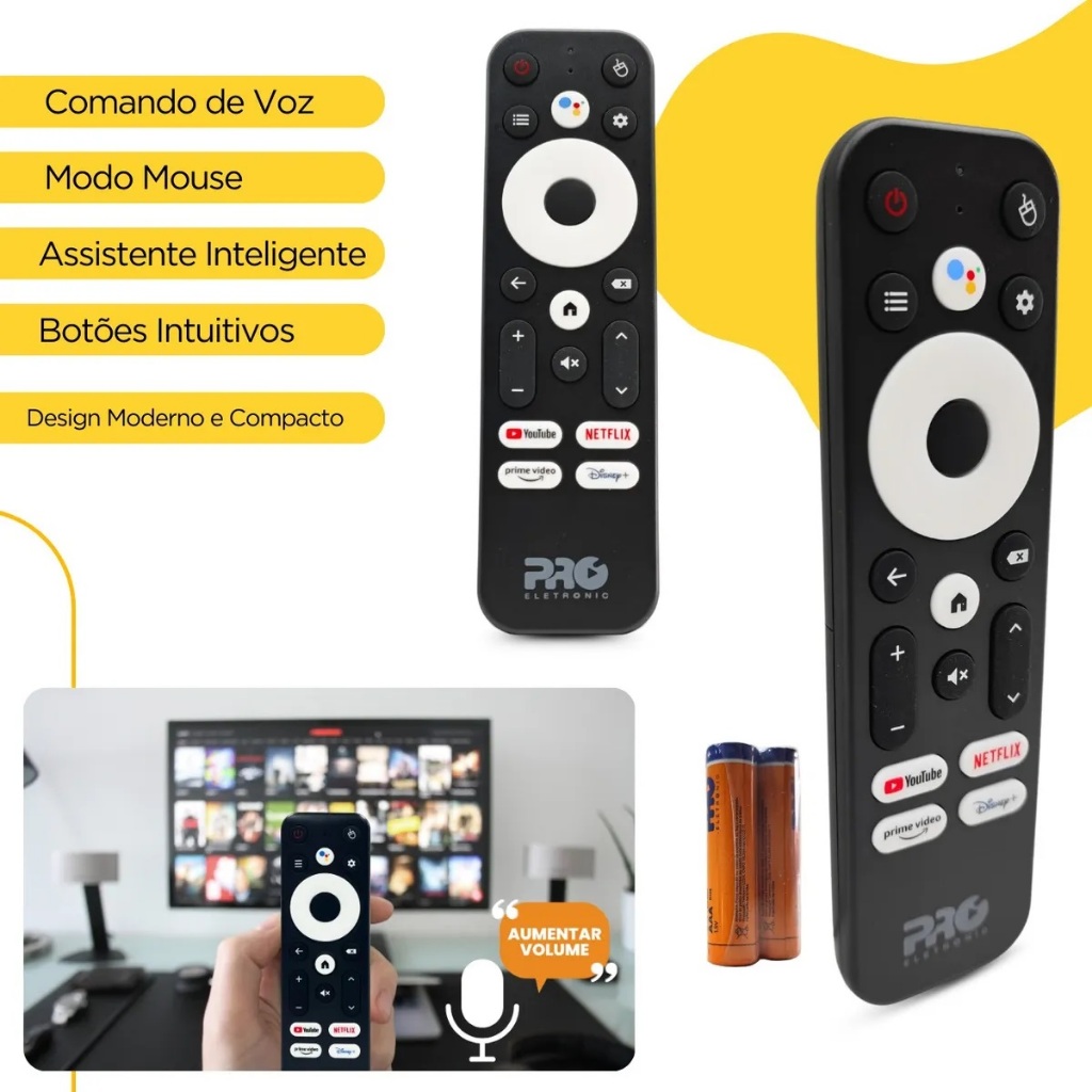TV Stick Pro 4K HD Proeletronic - PROSK-1000 ***ESCOLHA COM ATENÇÃO, TEM 2 MODELO DE STICK UM MAIS ROBUSTO OUTRO MAIS BASICO POREM AMBOS SAO MUITO BOM A DIFERENÇA QUE O MAIS BARATO O CONTROLE NÃO É BLUETOOTH E LASE SOMENTE ISSO**** Transforme sua TV comum em Smart com comando de voz! Somente o PROSK-1000 possui comando de voz. JA O MODELO MAIS BARATO TVN-13 NÃO POSSUE COMANDO DE VÓZ O TV Stick Pro 4K HD PROSK-1000 da Proeletronic é a solução compacta e poderosa para acessar conteúdos em alta definição na sua TV. Com resolução 4K, você desfruta de imagens nítidas e de uma experiência de entretenimento única. Desempenho Ágil: Equipado com 2 GB de RAM e 16 GB de armazenamento, oferece desempenho rápido e amplo espaço para seus apps. Comando por Voz: Controle sua TV com facilidade utilizando o Google Assistant no controle remoto Bluetooth. Conectividade Completa: Conexões Wi-Fi Dual Band, Bluetooth, HDMI, USB-A e entrada para cartão microSD, garantindo fácil integração com outros dispositivos. Compatibilidade de Apps: Acesse plataformas como Netflix, YouTube, HBO, Globoplay e muito mais. Compacto e Prático: Medindo apenas 10 cm x 4 cm x 1 cm e pesando 100 g, é fácil de transportar e instalar. Instalação Simples: Conecte e comece a assistir em minutos. Acompanha na Caixa: 1 TV Stick Pro 4K 1 Controle Bluetooth com comando de voz 1 Fonte de alimentação 1 Extensor HDMI 1 Manual de uso Aproveite a qualidade 4K, a praticidade do controle por voz e a variedade de conteúdo ao alcance da sua mão. Atenção! Compre o TV Stick Pro 4K HD apenas se você realmente deseja esse produto. Antes de finalizar a compra, tenha certeza de que ele atende às suas necessidades. Em caso de dúvidas, estamos à disposição pelo chat para esclarecimentos. Evite transtornos e custos com devoluções. Compre com confiança e aproveite a melhor experiência de entretenimento!