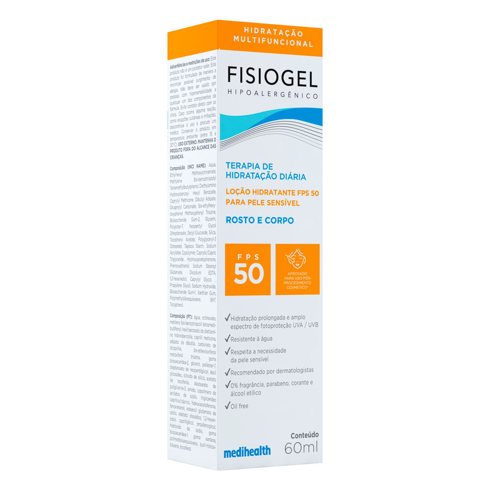 Fisiogel Loção Hidratante FPS 50 Rosto e Corpo Pele Sensível 60ml