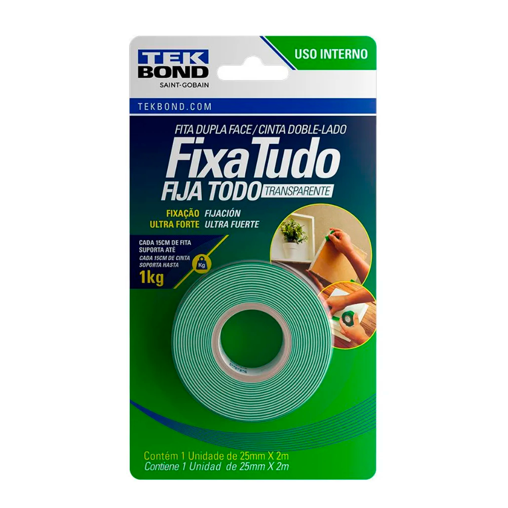 A fita fixa tudo interior tekbond é uma fita acrílica que foi desenvolvida para promover uma fixação ultra forte de maneira fácil, rápida e segura. com ela, você pendura quadros, objetos de decoração, canaletas e uma infinidade de outras peças. adere muito bem em madeira, parede, vidro, acrílico e metal. ela é transparente e indicada para uso interno em ambientes protegidos da luz do sol e intempéries.
