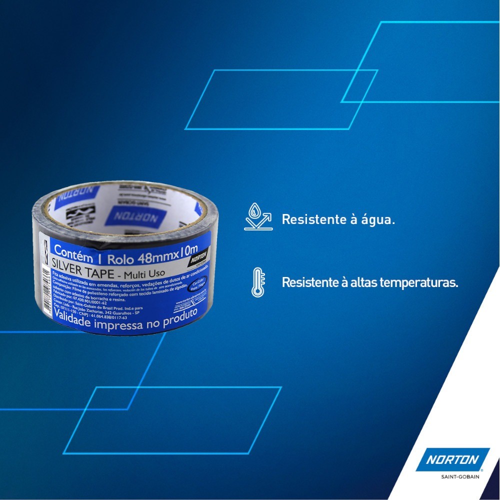| Fita adesiva 48 mm x 10 mt - Silver tape - Norton este produto | R$ 33,48 | — | 4.9/5 | — |