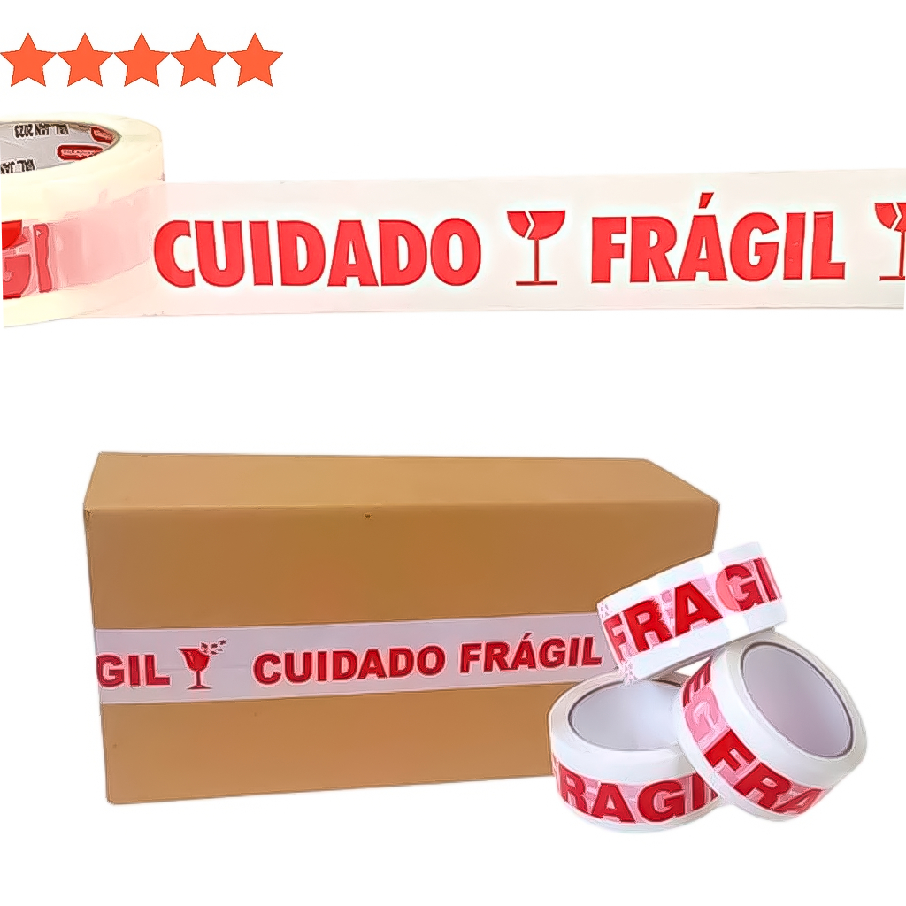 Fita Adesiva Branca Cola Forte Cuidado Frágil 70mm x 50m