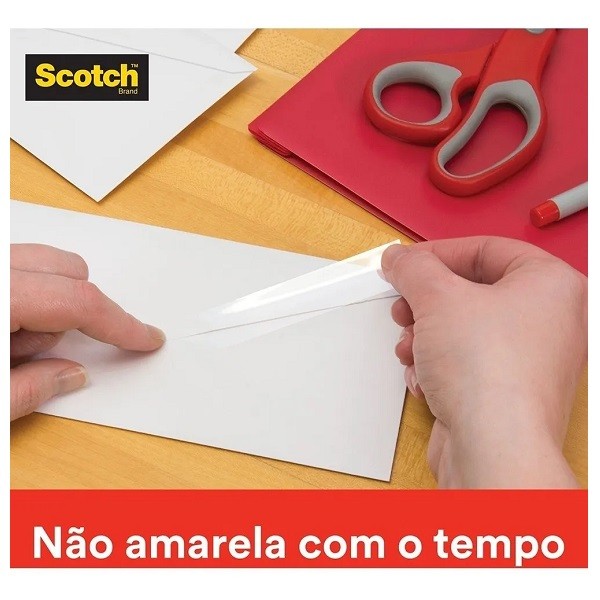 Acabamento brilhante e transparente, corte fácil, desenrolamento suave e sem barulho, filme mais espesso, evitando quebras e é mais fácil achar a ponta. Eficiente, pois cola com maior qualidade e fixa por mais tempo. Indicação de uso: A Fita Adesiva Scotch Transparente é perfeita para pacotes e presentes que exigem acabamentos finos, pois possui acabamento perfeito. Pode ser usada em tarefas domésticas, no escritório e no comércio.