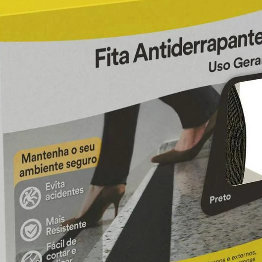 Fita Antiderrapante Safety Walk Preta 50 mm x 5 m Descrição: - A Fita Antiderrapante 3MT Safety-Walk e projetada para reduzir o risco de quedas e acidentes em ambientes residenciais e comerciais. Facil de cortar e aplicar, seu adesivo e forte e resistente a chuvas e ao trafego de pessoas. Esta fita antiderrapante para escadas e pisos e durável, confortável também para pês descalços, resiste a mofo e bolor e não racha ou descasca com o uso. E ideal para evitar escorregões e quedas e esta disponível em uma variedade de tamanhos, cores e materiais. E um adesivo antiderrapante que pode ser utilizado durante longo tempo em locais com trafego intenso. Como usar: Para utilizar o produto, a superfície deve estar limpa, seca e isenta de gordura. Deverão ser eliminados, antes da aplicação da fita, quaisquer revestimentos que estiverem sobre a superfície, tais como ceras, tintas, vernizes, etc. Informações Gerais: - Reduz o risco de quedas e acidentes; - Mais Resistente; - Facil de cortar e aplicar; - Para ambientes internos e externos. Aplicações Sugeridas: - Escadas; - Rampas. Especificações Técnicas: - Cor: Preto; - Tipo: Antiderrapante; - Dimensões: 5 m x 50 mm; - Material: Filme de poliéster, adesivo de borracha e fita protetora de papel. Itens Inclusos: - 1 Fita antiderrapante preta - 50 mm x 5 m.
