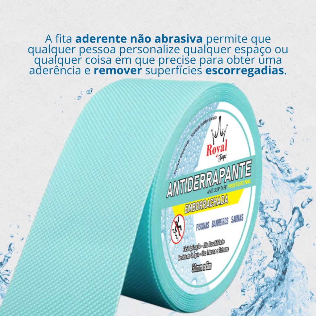 Fita Antiderrapante Emborrachada Royal Tape 5mts Nao Abrasiva Area Molhada Piscina Banheira Banheiro Escada Skate Banho