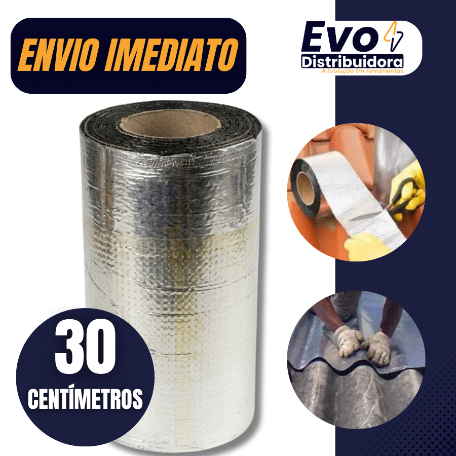 Fita Asfáltica Impermeável Manta Adesiva Para Reparos 30CMx10M Rufo, Calha Telhado