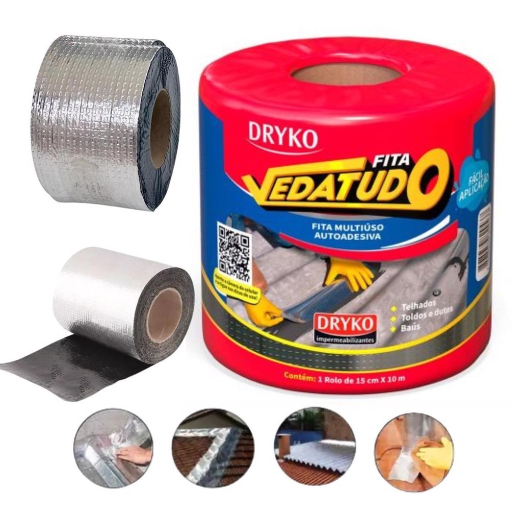 Fita Autoadesiva Asfáltica Vedatudo 15cm X 10 Metros Dryko ..................................................................................................................................... INFORMAÇÕES SOBRE O PRODUTO ..................................................................................................................................... Fita autoadesiva multiuso à base de asfalto modificado, autoprotegida com filme de alumínio que permite sua exposição a intempéries e aos raios solares, sendo de fácil aplicação, na qual proporcionam medidas imediatas para solucionar problemas de gotejamento e vedações. ..................................................................................................................................... ESPECIFICAÇÕES DO PRODUTO ..................................................................................................................................... Onde aplicar: Telhados. Rufos e chapas metálicas. Dutos de ventilação e ar condicionado. Sheds e cúpulas, Vedações de domos e claraboia. Reparos rápidos em baús, toldos e similares. Sistema de reflexão térmica. ..................................................................................................................................... DÚVIDAS FREQUENTES ..................................................................................................................................... Pergunta: Como é embalado o produto? Resposta: Todos os nossos produtos vendidos são embalados em caixas lacradas ou plástico stretch. Em respeito ao meio ambiente 90% das caixas são reutilizadas. Pergunta: Quem faz a entrega? Resposta: A entrega é terceirizada, feita via CORREIOS ou TRANSPORTADORA. Pergunta: O envio é feito em quantos dias? Resposta: Nós enviamos o seu pedido no prazo máximo de 24 horas após a confirmação de sua compra, sendo um dos envios mais rápidos da plataforma. Pergunta: Os produtos são novos ou usados? Resposta: Todos os produtos que trabalhamos são novos e com qualidade garantida. .....................................................................................................................................