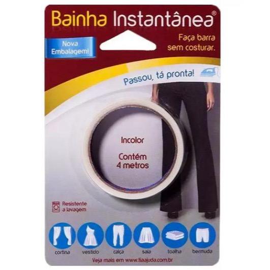 Descrição do produto Faça a bainha de roupas sem costurar. Dispensa linha e agulha, não solta ao lavar. Pode ser usado em cortinas, vestidos, calças, saias, bermudas etc. PERGUNTAS FREQUENTES: Como é aplicado a fita bainha? Essa fita só da cola, quando é aplicado com o ferro QUENTE, caso contrário, ela não terá cola! No verso do produto vai detalhado como deve ser aplicado. E para auxiliar melhor nossos cliente deixamos nesse anuncio um vídeo ilustrativo demonstrando como deve ser aplicada, a mesma. Serve para quais tecidos? Serve para todos os tecidos que possa ser aplicado ferro QUENTE! No caso do tecido de seda orientamos a não utilizar a mesma, devido ao tecido não suportar a temperatura do ferro quente. Para retirar a fita é fácil? Essa fita não foi desenvolvida para sair, após sua aplicação com ferro QUENTE. Sendo assim, para sua remoção deve cortar a parte aplicada e fazendo uma nova barra ou redobrando a parte nova deixando a existente. Qual é a largura da fita? A largura é de 1 cm x 4 metros de comprimento, em cada. A fita é termocolante? É sim! Essa fita só da cola, quando é aplicado com o ferro QUENTE, caso contrário, ela não terá cola, ela fixa ao tecido com a temperatura do ferro de passar. nesse anuncio tem um vídeo ilustrativo, demonstrando como deve ser aplicada, a mesma.