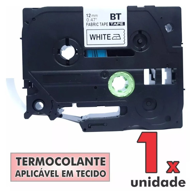 Fita Compatível com Brother 12mm Termocolante Rotulador Tze Laminada Letra Preta