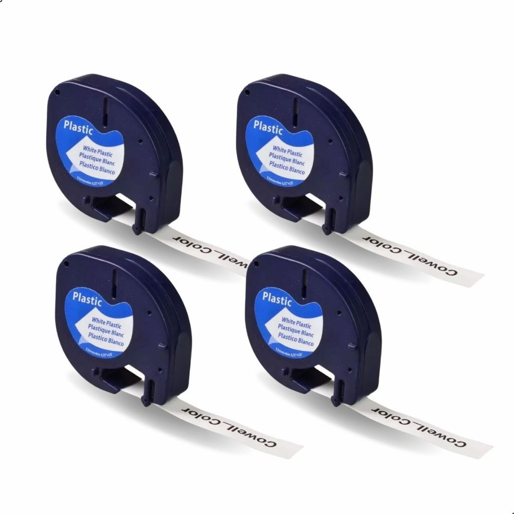 Fita Compatível para Rotuladores DYMO Letratag 12mm x 4m Kit 4 unidades Impressão Preta Incolor
