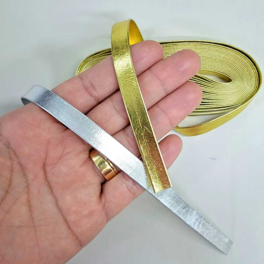 Fita Couro Sintético Metalizada ou Verniz 1cm – Rolo com 5 Jardas (4,58 Metros) – Escolha até 3 Rolos