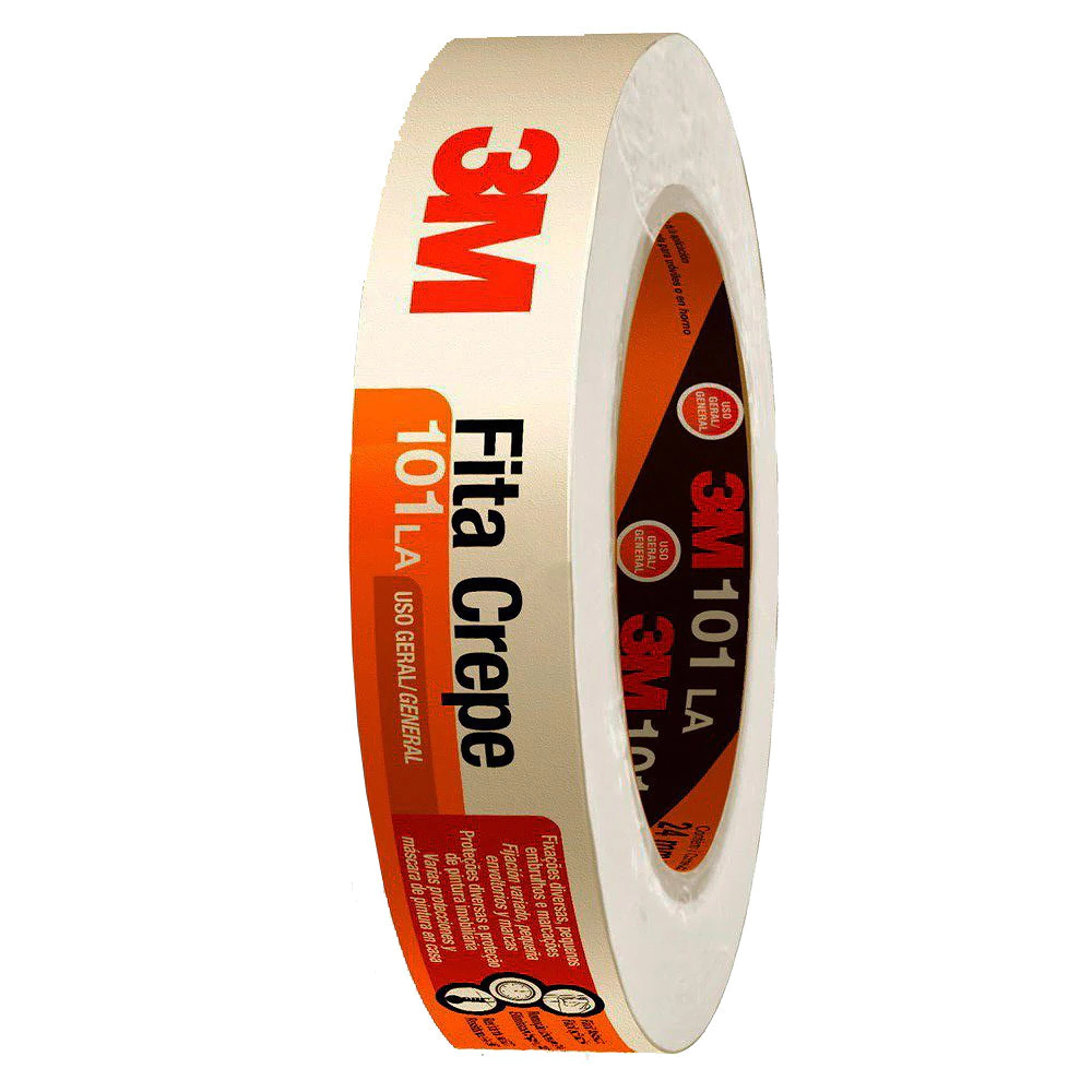 Fita Crepe 101LA Descrição: - O adesivo da Fita Crepe 3M 101 LA adere instantaneamente a papéis, metais, madeiras, plásticos, vidros, áreas pintadas e outras superfícies sem descolar - inclusive em locais irregulares e cantos arredondados. No momento da remoção, o produto descola suavemente e por inteiro, sem quebrar ou danificar a superfície. A Fita 101 LA é um utensílio indispensável em todas as caixas de ferramentas, escritórios e até mesmo em casa. Versátil, ela pode ser usada para fechamento de embalagens e caixas de papelão, pendurar placas de sinalização temporárias, fazer marcações para pinturas e muitas outras utilidades. Características: - Fácil de aplicar; - Remoção limpa; - Linha de pintura com excelente acabamento; - Resistente a água e solventes; - Alta adesão. Dados Técnicos: - Marca: 3M; - Referência: HB004572374; - Uso em Até: 50°C; - Adesão em placa de aço N/19 mm = 4; - Resistência a tração Kgf/19mm: 6,0; - Alongamento: 12%; - Espessura Total: 0,10 mm; - Cor: Bege; - Largura: 24 mm; - Comprimento: 50 metros. Modo de Uso: - A superfície deve estar seca, limpa e isenta de impurezas; - Desenrole a fita e fixe-a a superfície sem esticar, aplicando pressão com a mão, espátula e/ou rolete de borracha para garantir a adesão em toda a área e bom acabamento da linha de pintura; - Não deixar a fita aplicada por períodos superiores há 24 horas, para não haver transferência de adesivo; - Produto não recomendado para isolação elétrica. Aplicações Sugeridas: - Pintura imobiliária - Leves aplicações industriais; - Sela papéis, embalagens e caixas. Itens Inclusos: - 1 Fita crepe 101LA.
