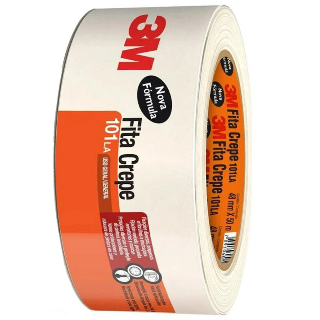 Fita Crepe 101 LA - 48 mm x 50 m Descrição: - A Fita Crepe 3M 101 LA prende, veda e protege superfícies de respingos de tinta. Resistente e facil de usar, o produto não rasga durante o uso e pode ser cortado com a mão, sem necessidade de usar tesoura. O adesivo da Fita Crepe 3M 101 LA adere instantaneamente a papeis, metais, madeiras, plásticos, vidros, áreas pintadas e outras superfícies sem descolar - inclusive em locais irregulares e cantos arredondados. No momento da remoção, o produto descola suavemente e por inteiro, sem quebrar ou danificar a superfície. A Fita 101 LA e um utensilio indispensável em todas as caixas de ferramentas, escritórios e ate mesmo em casa. Versátil, ela pode ser usada para fechamento de embalagens e caixas de papelão, pendurar placas de sinalização temporárias, fazer marcações para pinturas e muitas outras utilidades. Informações Gerais: - Facil de aplicar; - Remoção limpa; - Linha de pintura com excelente acabamento; - Resistente a agua e solventes; - Alta adesão. Aplicações Sugeridas: - Pintura imobiliária; - Leves aplicações industriais; - Sela papeis, embalagens e caixas. Especificações Técnicas: - Cor: Branco; - Tipo: Crepe; - Dimensões: 48 mm x 50 m. Itens Inclusos: - 1 Fita crepe 101 LA - 48 mm x 50 m.