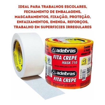Fita Crepe Larga Uso geral 18mm x 50m - 24mm x 50m - 48mm x 50m Mask 710 Adelbras