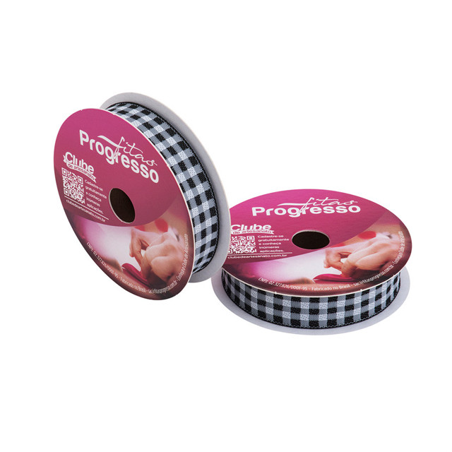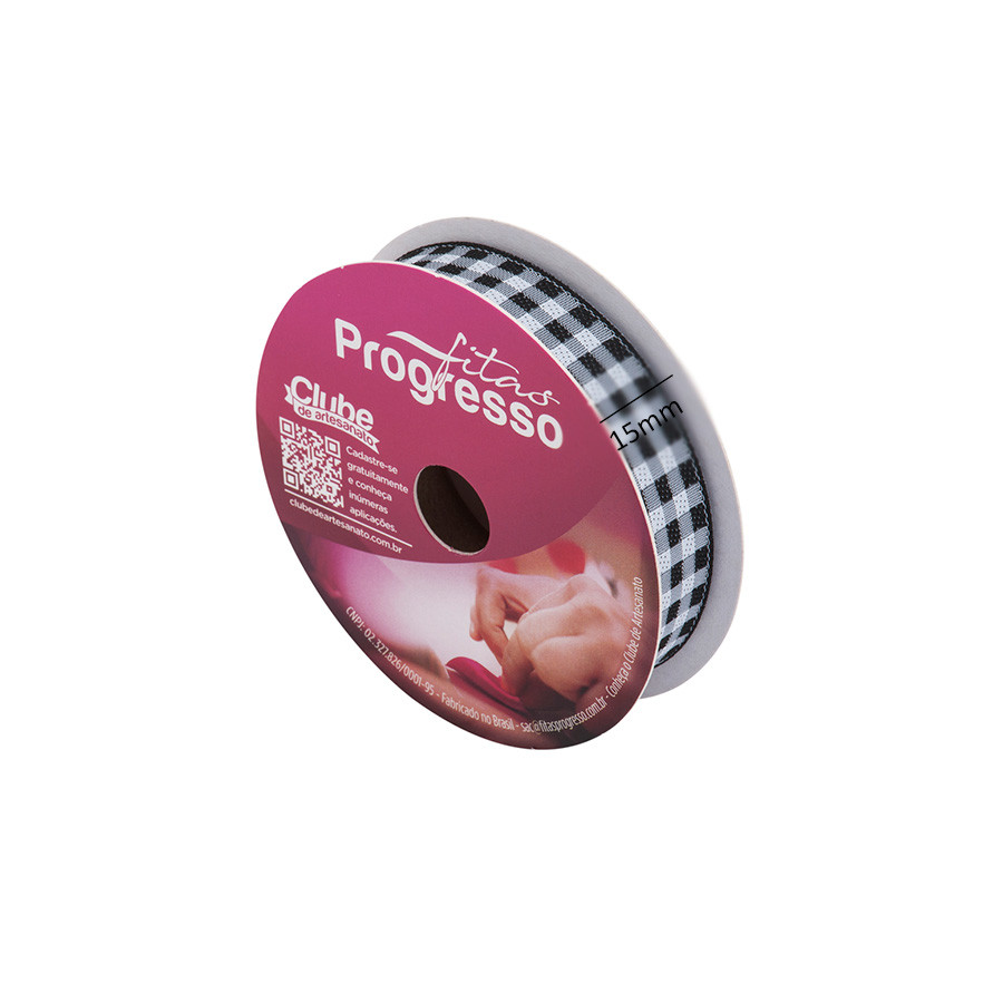 Fita de Cetim 10m x 15mm - Cor 219 - Xadrez Preto - Rolo 10 metros - 1 unidade - Progresso - Rizzo