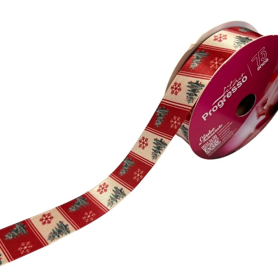 Fita de Cetim 10m x 22mm - Cor 222 - Pinheiro Listrado - Rolo 10 metros - 1 unidade - Progresso - Rizzo