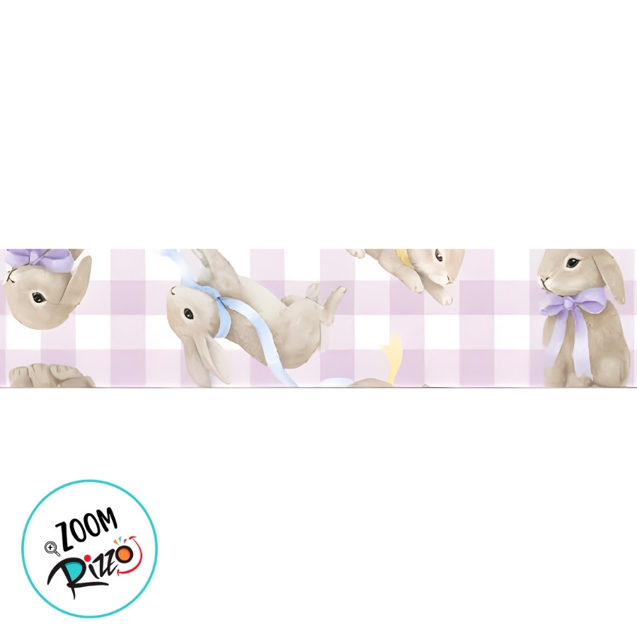 Fita de Cetim 15mm x 10m - Coelhos com Laços Xadrez Lilás - ECF003TR Cor 101 - Rolo 10m - 1 unidade - Fitas Progresso -