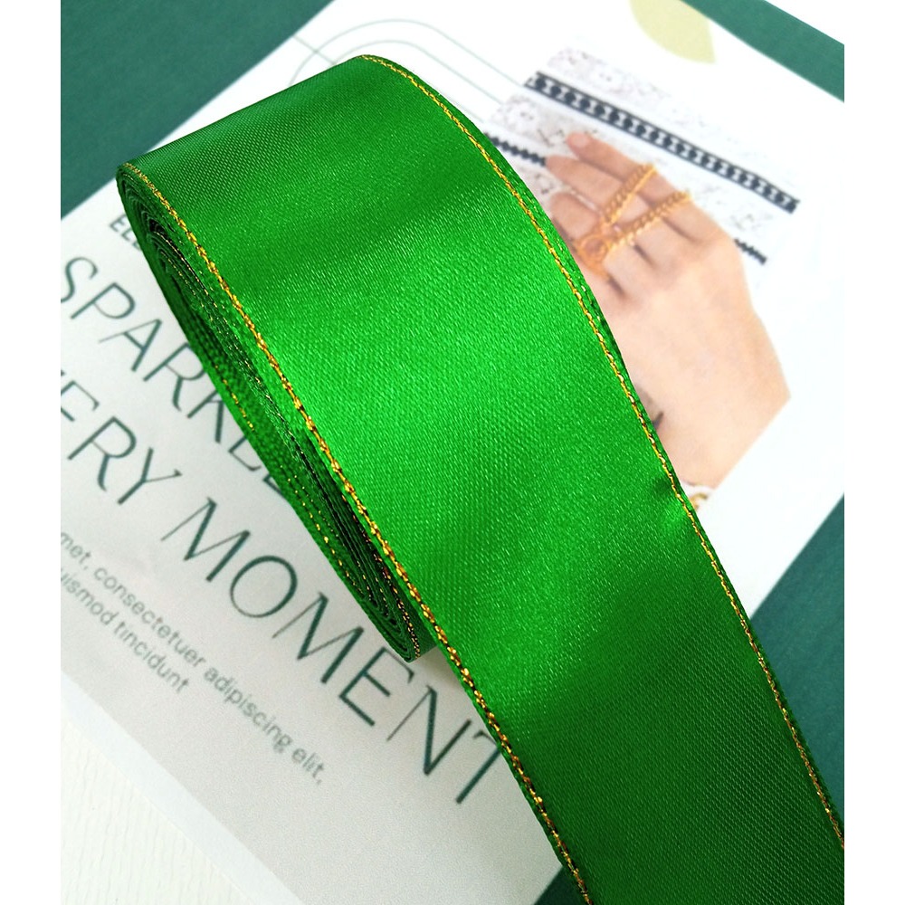 Fita de Cetim Borda Dourada N9 - 10 metros - Varias Cores