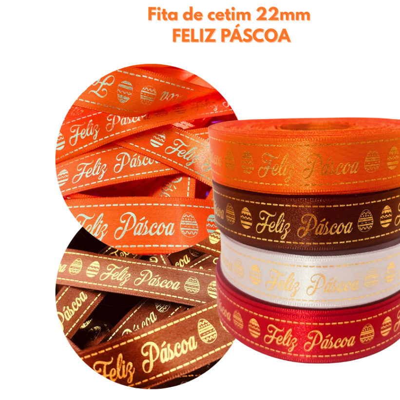 Fita de Cetim Feliz Páscoa 22mm Para Laços e Embalagem