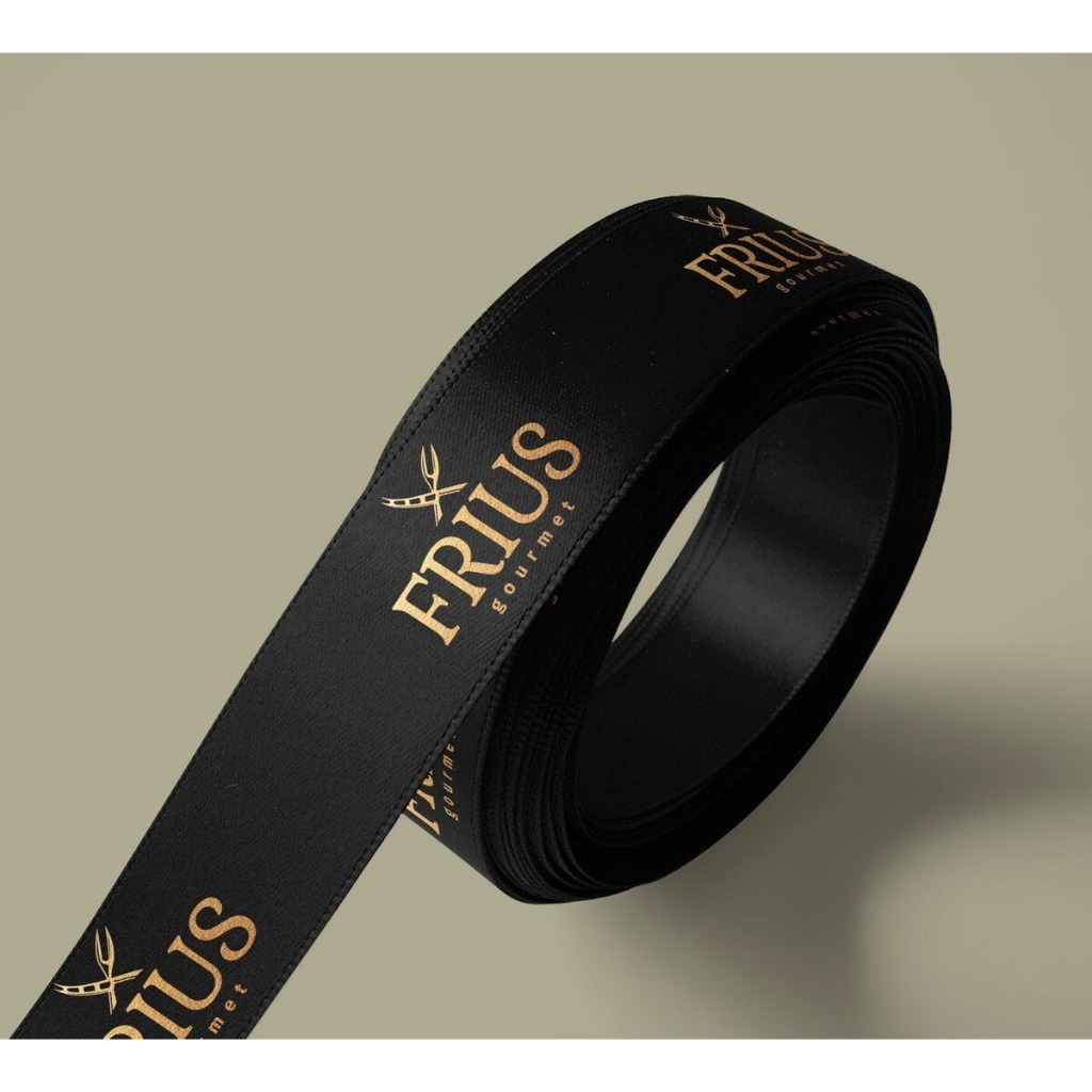 Fita de Cetim personalizada de 22mm em Hotstamping Dourado, Preto ou Prata