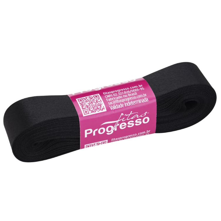 Fita de Cetim Progresso 22mm nº5 - 10m Cor 219 Preto - 01 unidade - Rizzo Distribuidora