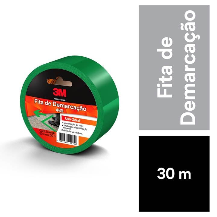 Fita de Demarcação 30 Metros x 50mm Verde 3M Uso Geral Sinalização de Solo