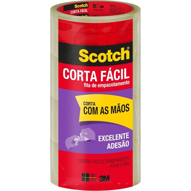 Fita de Empacotamento Scotch Corta Fácil – 45 mm x 40 m, 3M - PT 4 UN