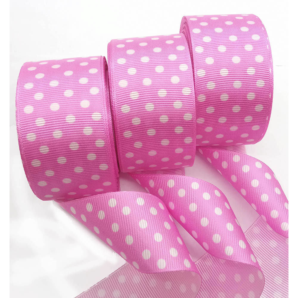 Fita de Gorgorão Rosa Poá Branco 38mm Rolo com 10 metros para Laços e Artesanato